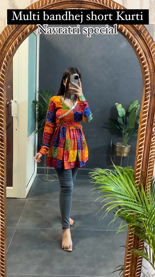 Navratri Special Multi Bandhej Short less Top